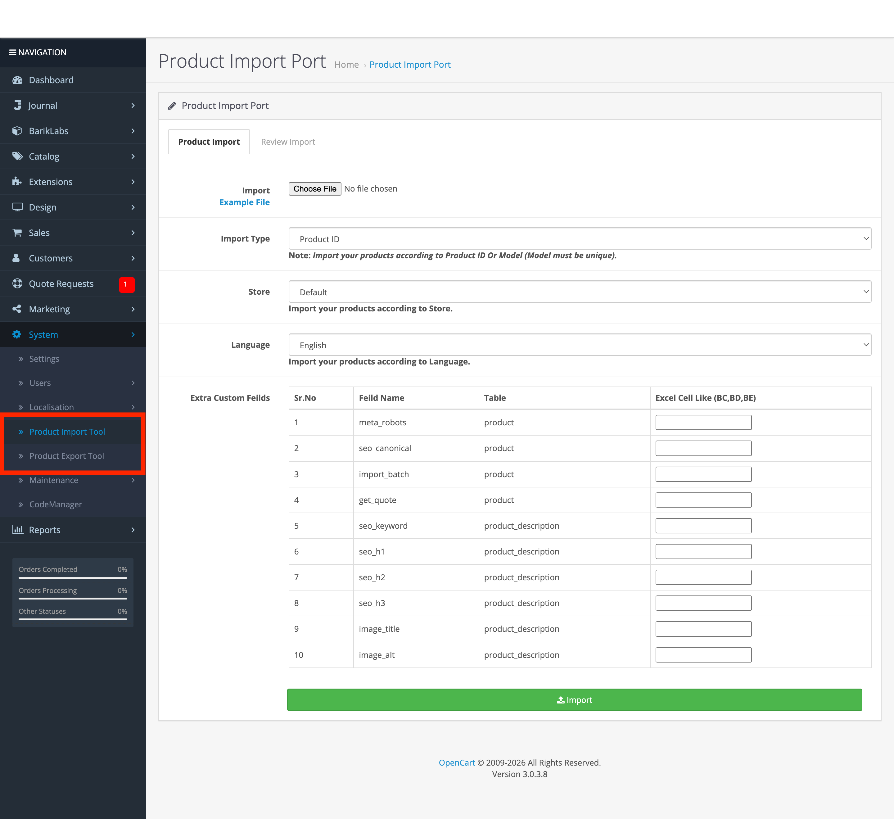 Extension ini bekerja langsung dari Admin Panel OpenCart, tanpa mengganggu data lain. Proses import dirancang agar data lama tetap aman, produk bisa di-update tanpa duplikasi, dan struktur OpenCart tetap terjaga.